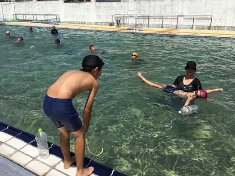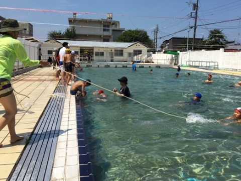 水戸市内の小学校プールにて、水戸の団と合同で着衣水泳訓練を行いました。