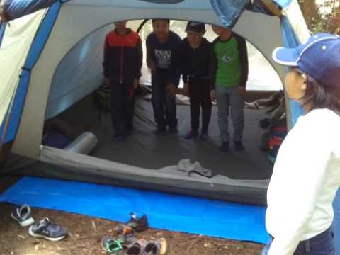 団野営場(蒼炎の杜)にて、デイキャンプを行いました。内容は、7月キャンプに向けてのテント設営訓練。