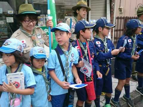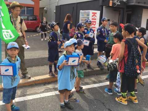 あり、声があまり出なかったスカウトも時間が経つにつれ、自分の呼び掛けの声で募金をしてもらいたい