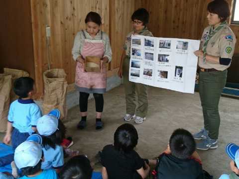 笹沼さんより、田植えを頑張ったという事でメロンを御馳走になり、みんなでおいしく頂きながらお米ができるまでのお話を聞きました。スカウト達は、真剣に耳を傾け聞き入っていました。