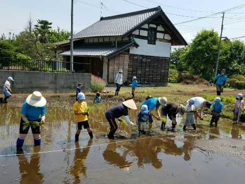 晴天の中、水戸の笹沼さん宅で田植えを行いました。