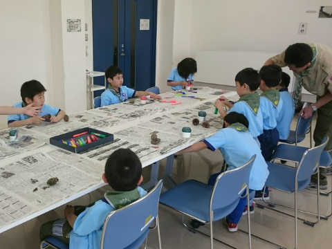 カブ隊は、募金の前にふぁみりこらぼに集合し、「世界の国々」の工作を行うというハードスケジュール。