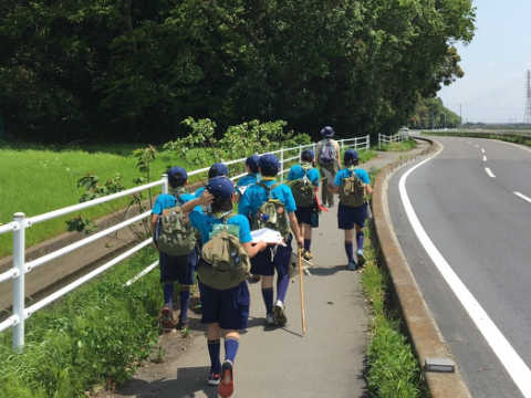 昼食後は、周辺を2時間追跡ハイク。暑さに負けず、工夫し、励まし合いながら歩く姿はとても逞しかったです。