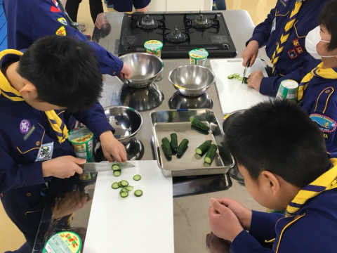 そして夕食の支度。調理が大好きなスカウト達は、競うように野菜を切っていきます。皆で作ったカレー。とても美味しかったです!
